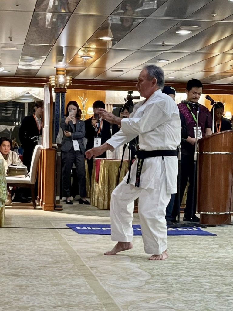 そこで、参加青年達による知事表敬への対応や、記念撮影、船上レセプション来賓挨拶、サプライズで空手演武を披露しました。